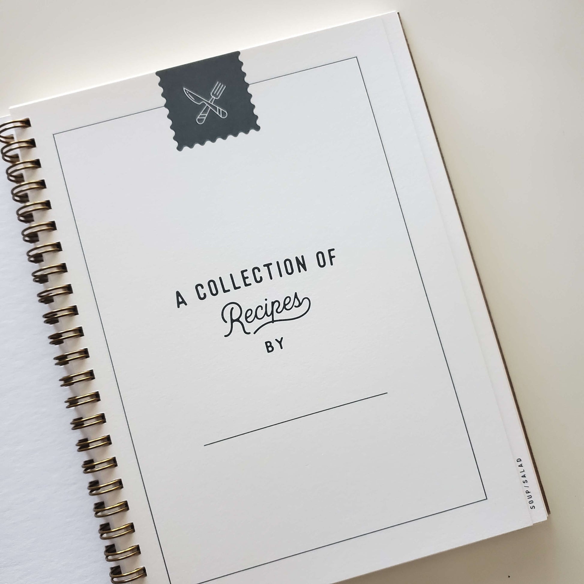 This recipe book is perfect for keeping all your family favorite recipes in one place. It makes a wonderful gift to pass down to your friends and family. It has a letterpress printed cover and is divided into 5 categories with space for a total of 110 recipes: Soup & Salad, Starters & Snacks, Side Dishes, Main Dishes, Desserts & Drinks. This recipe book is ready to be filled with your family’s favorite recipes.