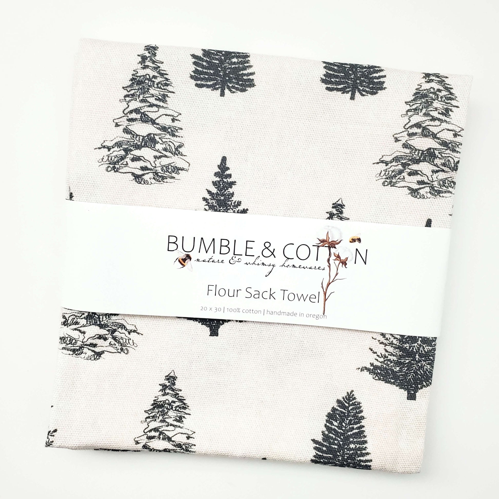 - Pine Trees Flour Sack Towel - a multi-functional, yet durable kitchen towel. Beautifully handmade and functions as the go-to kitchen towel for all culinary tasks such as drying hands and dishes, cover rising dough or wrap all those holiday baked goods with.