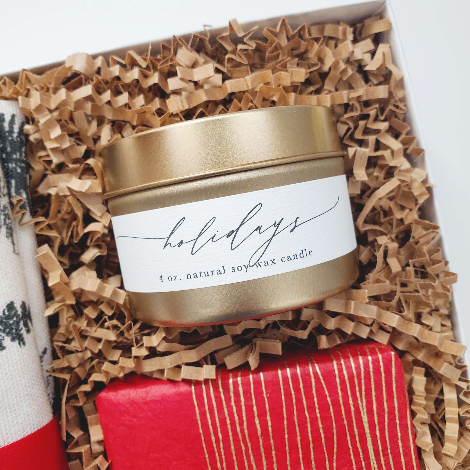 - Holidays Tin Candle - Handcrafted soy wax candle with notes of orange pomander, juniper and currant; creating holiday nostalgia. Its aroma will put you in the holiday spirit!
